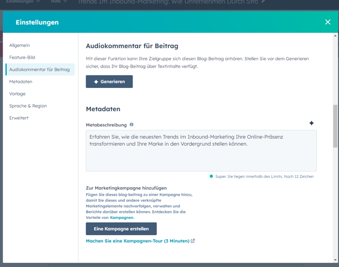 Das Erstellen von Audio-Versionen des bestehenden Inhalts ist eine effektive Methode, um das Engagement und die Reichweite zu steigern. Aktuell können in Hubspot Audio-Versionen von Blogbeiträgen erstellt werden.